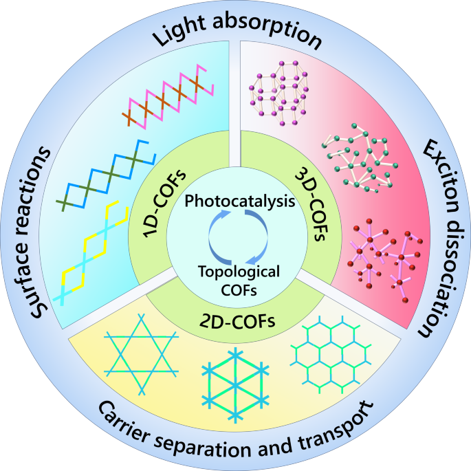 近年来,由于共价有机框架(COFs)具有高比表面积、稳定的孔结构和稳定的化学结构等优势,它们得到了快速发展。这使得许多研究者认识到COFs在催化、吸附和能量储存领域的巨大潜力。通过修改构建单体和进行后合成修饰等方法,可以精确设计COFs的功能性,从而拓展材料开发的可能性。拓扑结构对光催化性能有显著影响,能够调节光吸收、光电子转移和载流子迁移。先前的研究已经强调了拓扑结构在基于COFs的光催化中的重要性;然而,目前仍缺乏全面的综述。为此,本文旨在揭示拓扑结构与基于COFs的光催化之间的结构-活性关系,通过对拓扑COFs的光催化机制及其增强机制的分析来进行探讨。特别是,本文系统地阐述了在一维(1D)、二维(2D)和三维(3D)拓扑COFs的光催化性能提升方面的进展。此外,还详细总结了拓扑COFs的设计和修饰策略,包括合成前和合成后的调控方法,以进一步提升其光催化性能。预计本文能为COFs光催化领域中拓扑结构的高效开发提供重要的参考和指导。