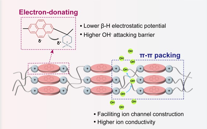 通过芘堆叠骨架结构增强离子交换膜(AEM)的OH?导电性和碱性稳定性,以用于水电解