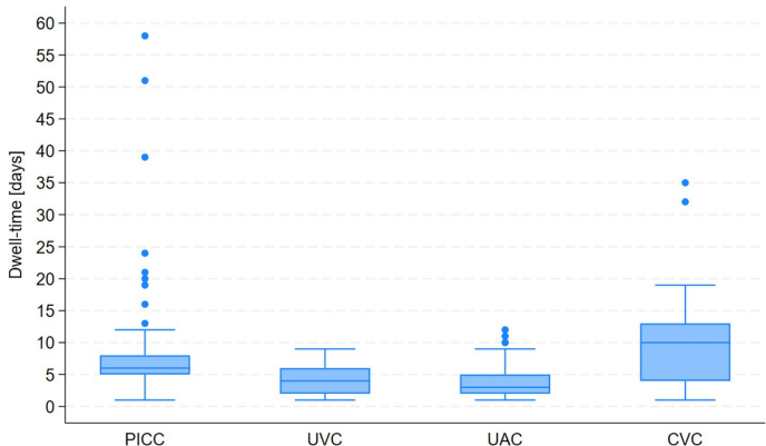 新生儿中心静脉导管相关血流感染风险与导管类型及留置时间的关联性研究
