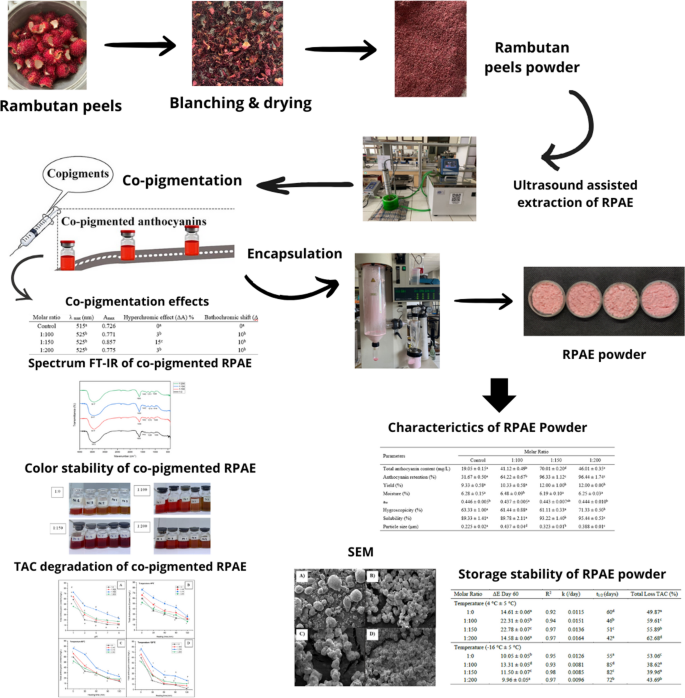 通过共色素化和包封技术稳定从红毛丹(Nephelium lappaceum L.)果皮中提取的天然花青素,以用于食品着色