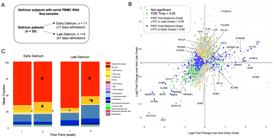 外周免疫基因动态变化揭示COVID-19谵妄机制:先天免疫持续激活与糖皮质激素调控的转录组学轨迹