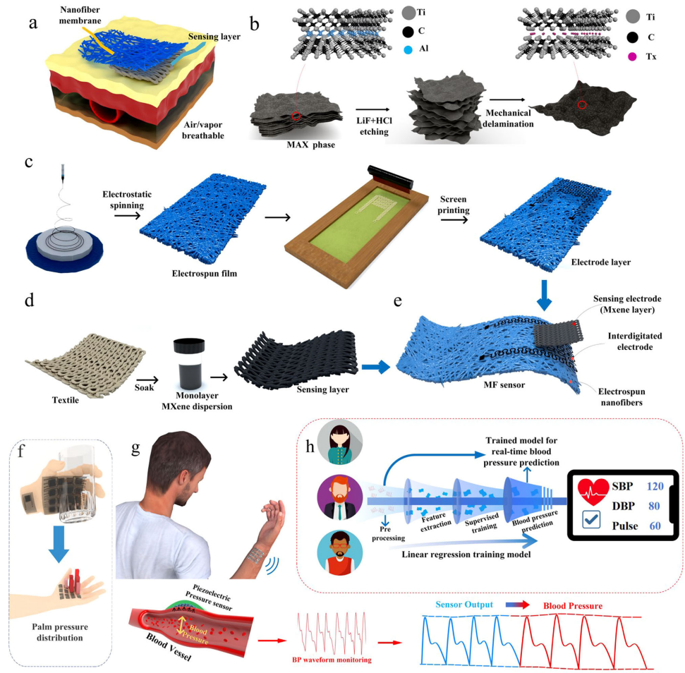 基于MXene纳米片与多孔聚酯织物的透气可穿戴压力传感器实现高灵敏度健康监测与实时血压预测