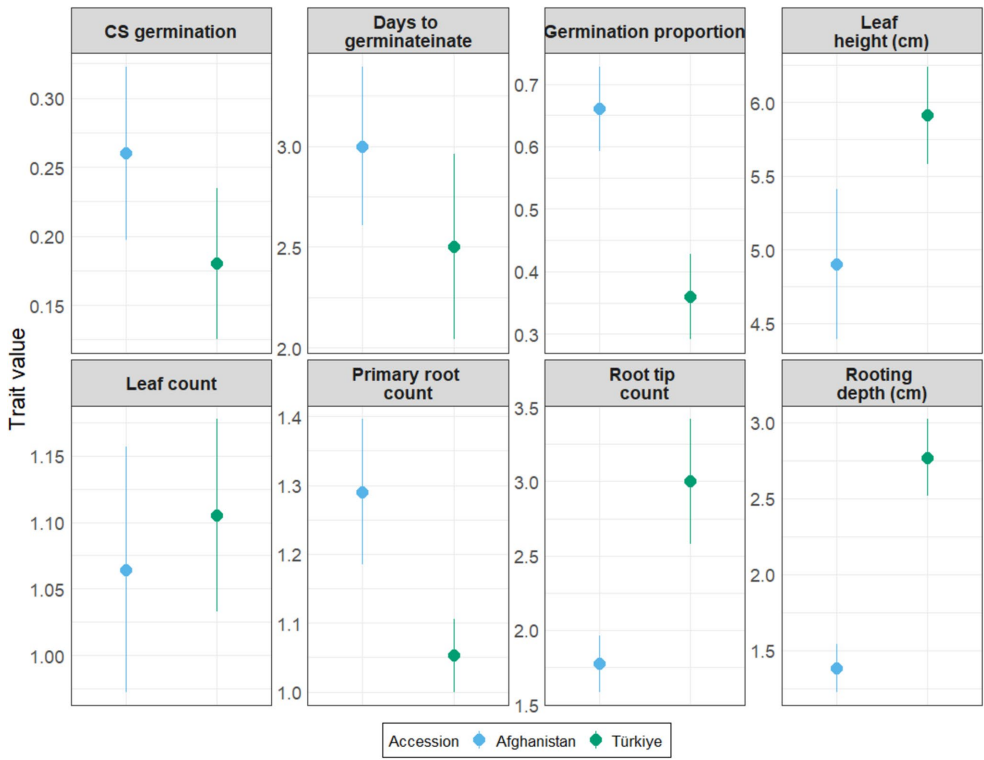 本研究针对种子微生物组如何影响植物早期发育这一关键问题,通过高通量扩增子测序分析了 Brachypodium distachyon 和 B. hybridum 的种子细菌组(bacteriome)和真菌组(mycobiome),并评估其对种子萌发和幼苗性状的影响。研究发现微生物组对性状的影响较弱,仅冷层积期间萌发与最丰富微生物科丰度呈边际正相关(R2=0.29, p=0.07),而基因型是更主要的影响因素。该研究强调了亲本基因型在种子微生物组构建中的主导作用,对农业和生态恢复中的微生物-性状预测具有重要启示。