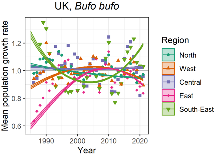 跨越多代持续减少的“普通”蟾蜍:广泛分布的两栖动物丰度长期下降与志愿者保护行动的成效评估