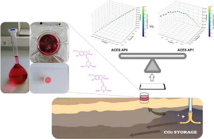 基于甜菜红素的二氧化碳泄漏生物传感器开发及颜色编码系统优化研究。该传感器通过pH响应实现土壤CO2泄漏检测,结合智能手机成像与Python图像处理技术,对比ACES AP0/AP1与sRGB/DaVinci色彩空间,验证AP1在色散抑制和计算效率上的优势,建立PLS等机器学习模型,在印尼CCS设施验证中实现<5%偏差,有效LOD达0.015 wt%。