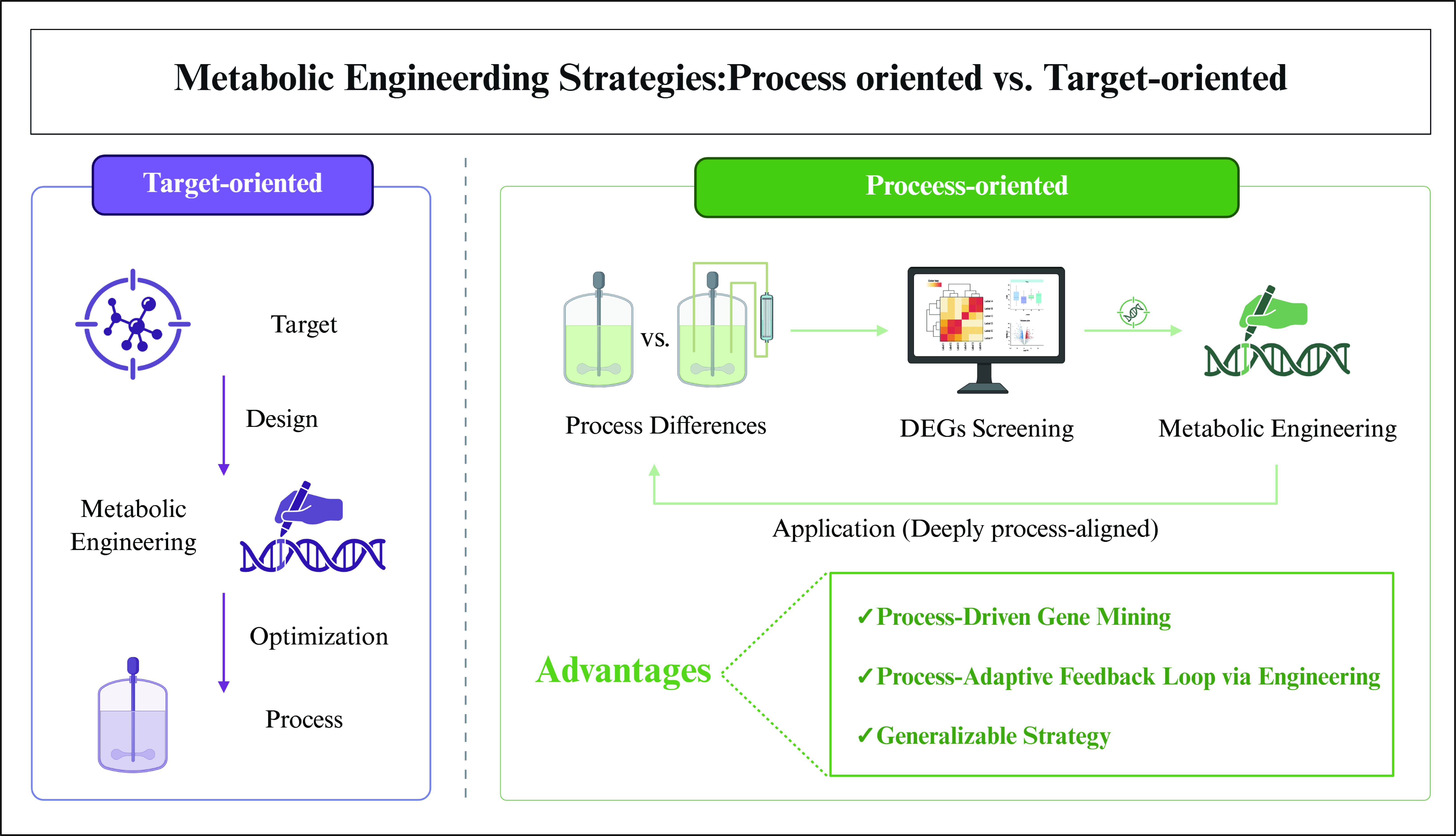 图2 “工艺导向”与“目标导向”代谢工程策略的比较